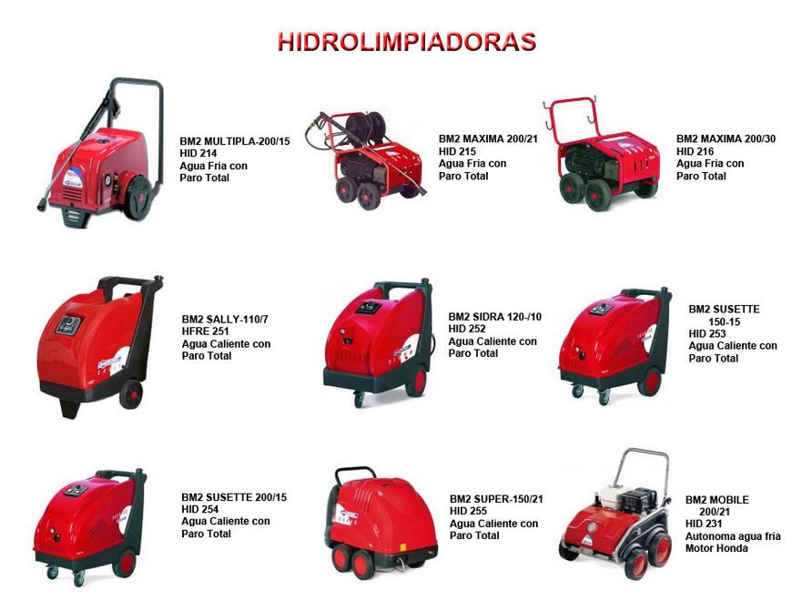 Los modelos de agua fría de la serie MULTIPLA de BIEMMEDUE están destinados a un uso altamente profesional. Las hidrolimpiadoras MULTIPLA presentan soluciones técnicas pensadas para su utilización en los sectores de la construcción, agrícola, automoción, industria y comunidades en general. Sus altas prestaciones permiten un acabado sobresaliente ante cualquier necesidad de limpieza, desinfección, desincrustación, etc. Incluyen un completo kit de accesorios y disponen de otra gran cantidad de ellos para realizar cualquiera de las funciones necesarias en una máquina de uso exclusivamente profesional